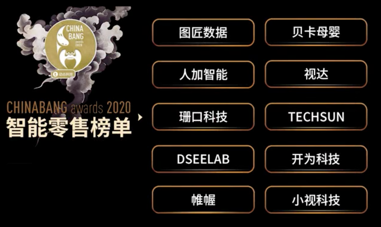 2020年4月29日,由动点科技主办的ChinaBang Awards 2020 线上颁奖典礼落下帷幕,HUMANPLUS米兰·(milan)入选 CHINABANG 智能零售年度十强。
